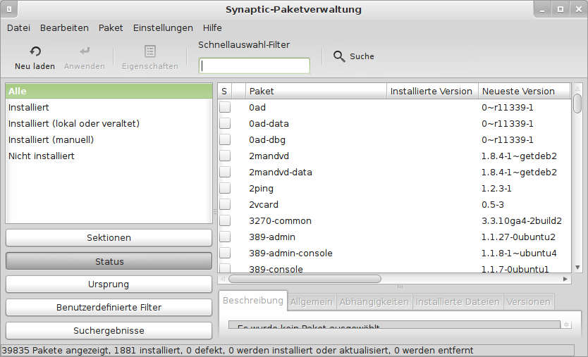 Anwendungsverwaltung / Softwareverwaltung oder der Synaptic-Paketverwaltung für detailliertere Paketangaben.